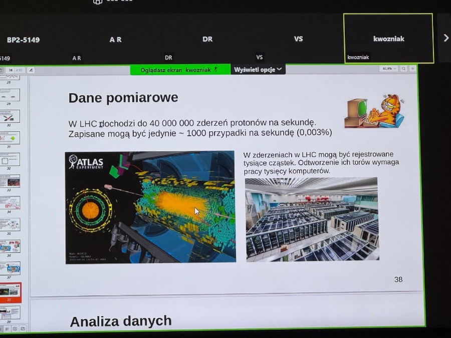 Następnie był czas na zadawanie pytań, a na końcu został przeprowadzony quiz – by uczestnicy mogli sprawdzić swoją wiedzę o cząstkach elementarnych i CERN uzyskaną podczas Warsztatów.
