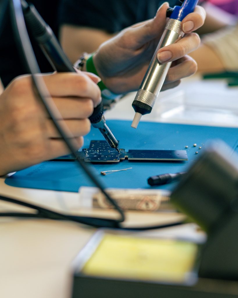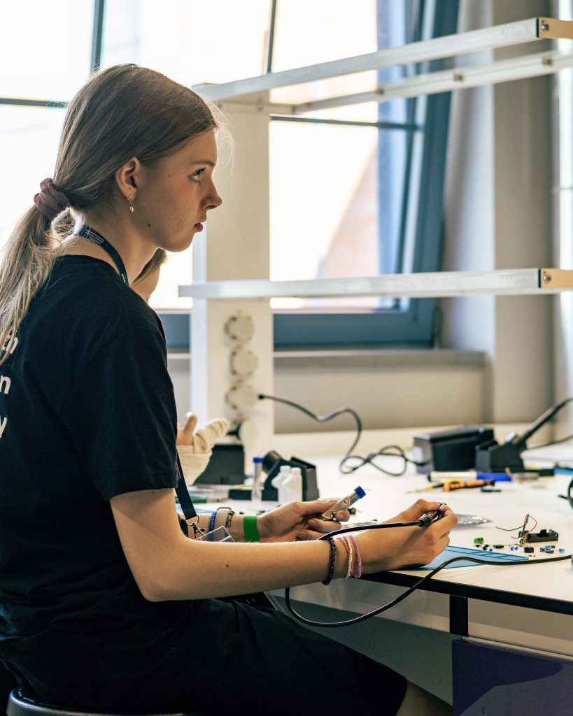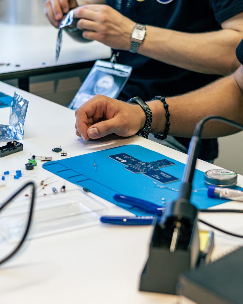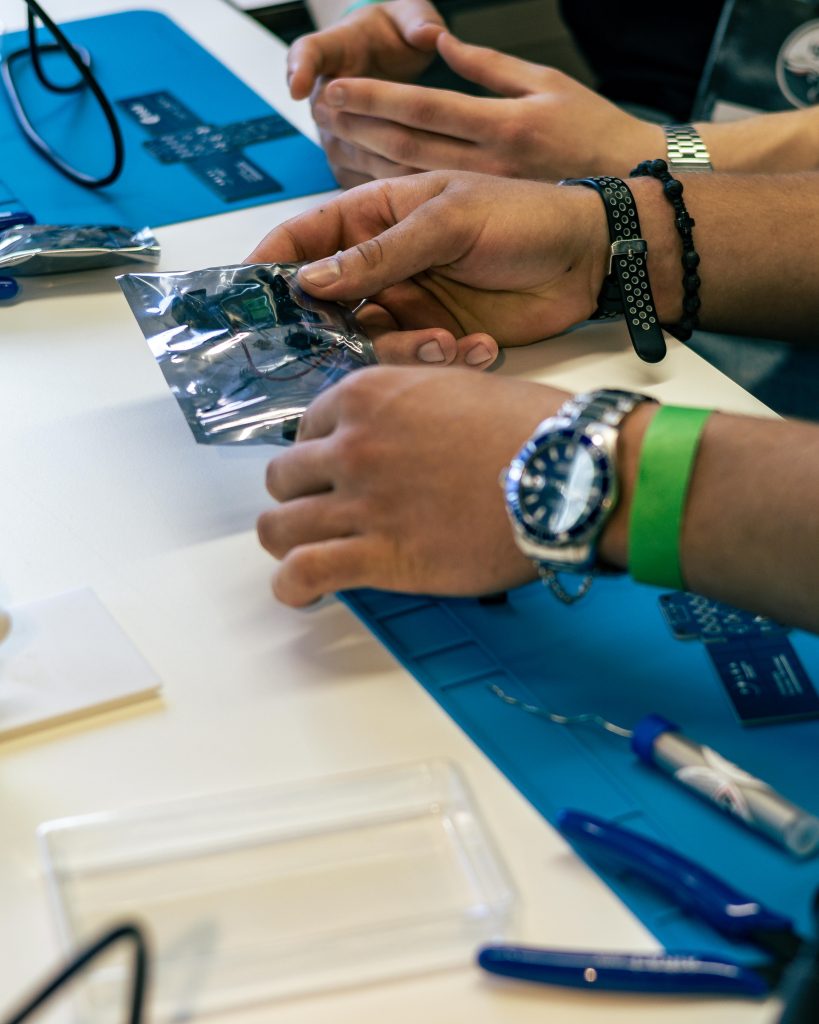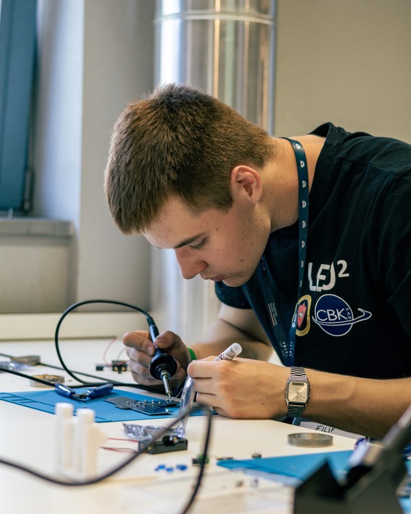 Pierwszą atrakcją czekającą na członków koła były zajęcia z lutowania, podczas których, za pomocą specjalistycznych narzędzi, składano klucz telegraficzny w kształcie satelity. Podobne urządzenie zabrał ze sobą na stację kosmiczną Sławosz. Następnie uczniowie udali się do sali konferencyjnej, gdzie rozpoczęła się główna część wydarzenia. Z przemówieniami wystąpili goście specjalni: przedstawiciel POLSA, dyrektor EC1 oraz prezydentka Łodzi.