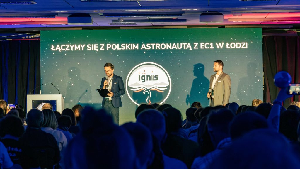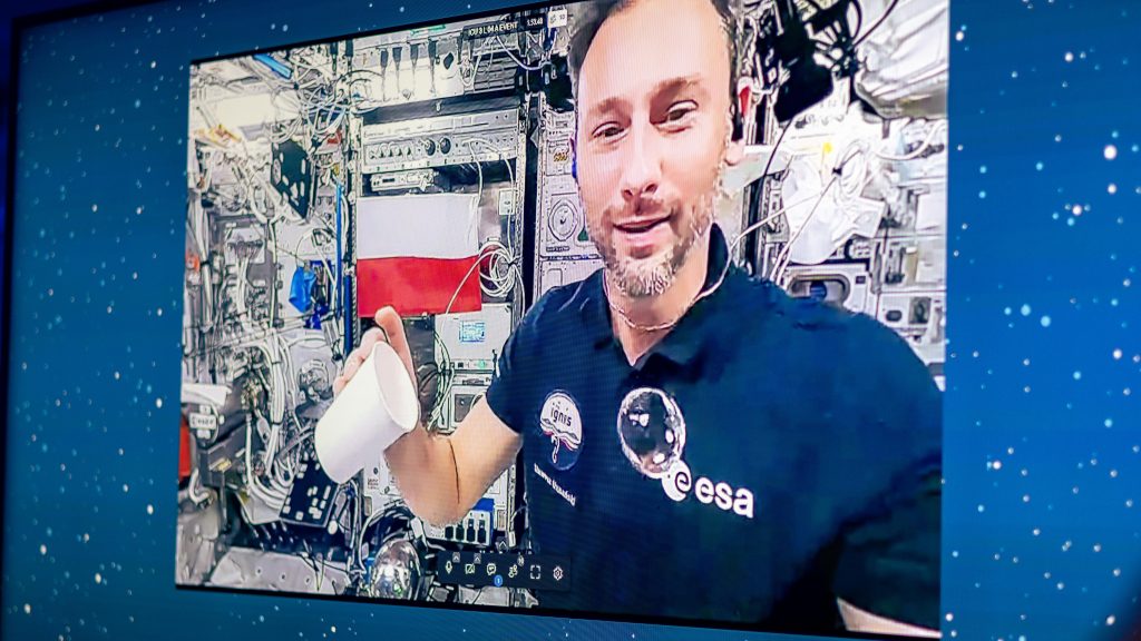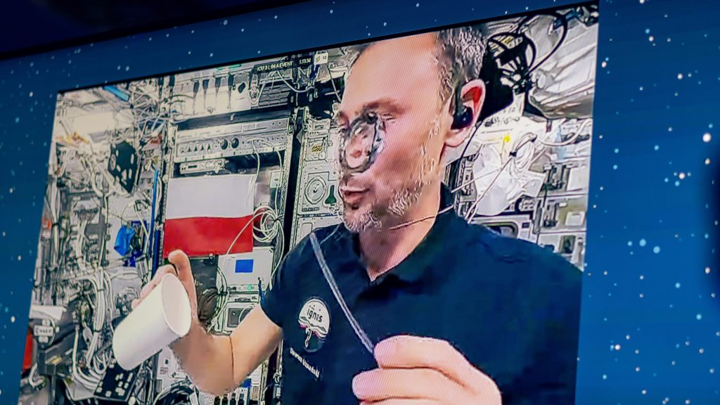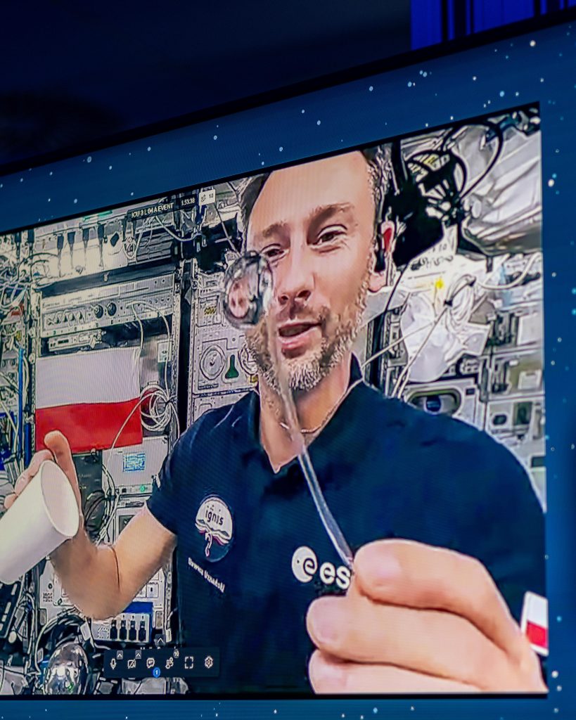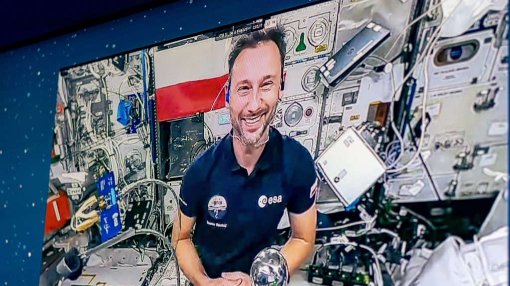 O godzinie 10 odbył się wykład na temat misji IGNIS, w której uczestniczy Sławosz. Wytłumaczone zostało jakie cele ma przedsięwzięcie związane z medycyną, biologią, technologią kosmiczną, inżynierią i rozwojem sztucznej inteligencji. Po przygotowaniach odbyła się najważniejsza część programu wydarzenia – połączenie wideo z astronautą Sławoszem Uznańskim – Wiśniewskim. Polak ten poleciał na Międzynarodową Stację Kosmiczną (ISS) 25 czerwca 2025 roku. Podczas połączenia astronauta wykonał zaproponowane przez laureatów konkursów doświadczenia. Były to eksperymenty z żyroskopem, wodą oraz sprężyną i kulką. Później te same eksperymenty zostały przeprowadzone przez uczniów w warunkach panujących na Ziemi.