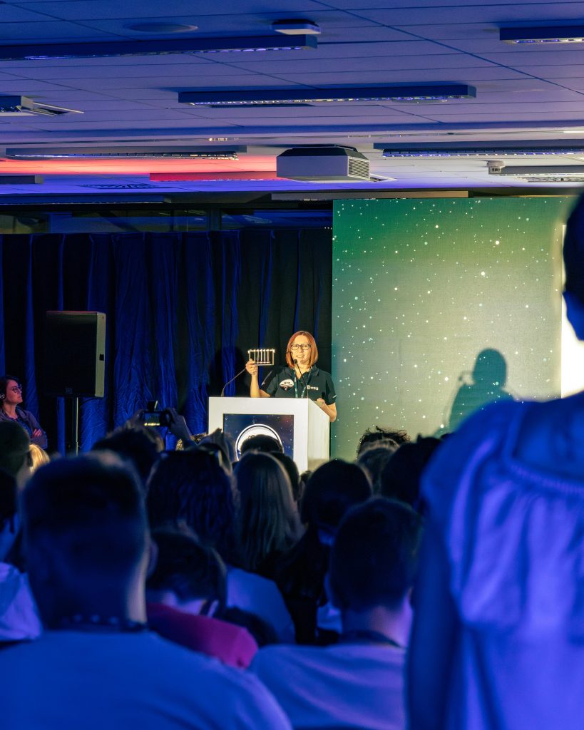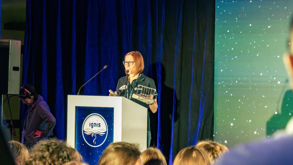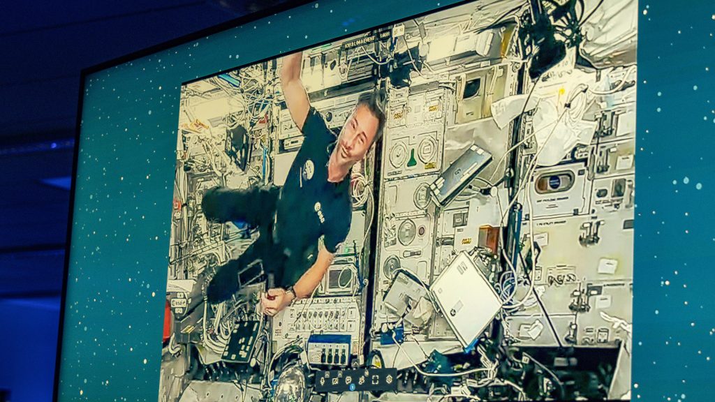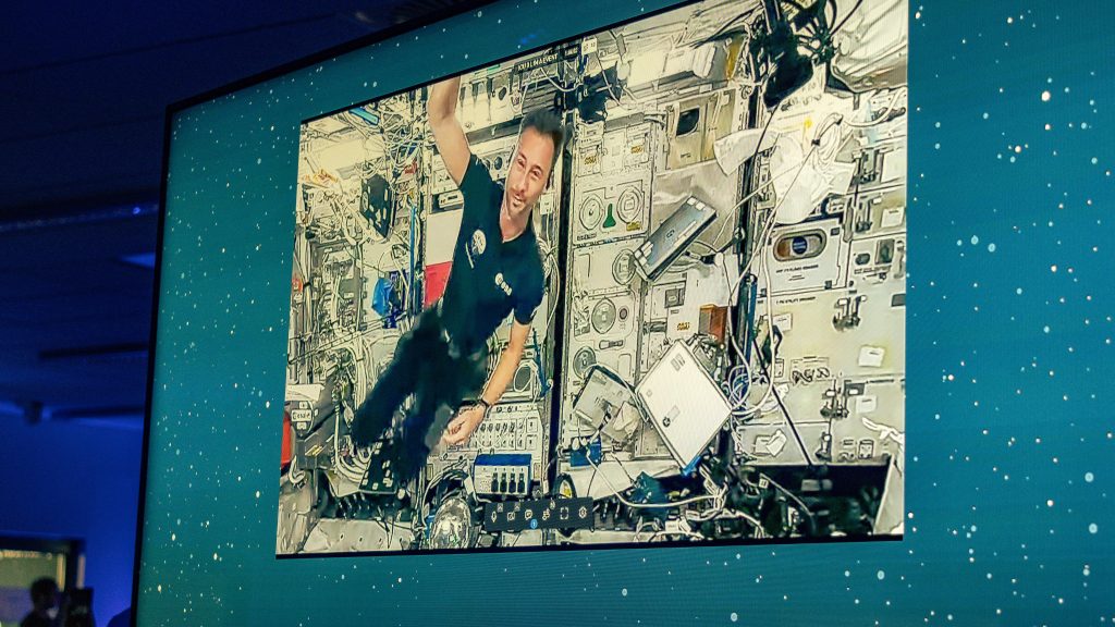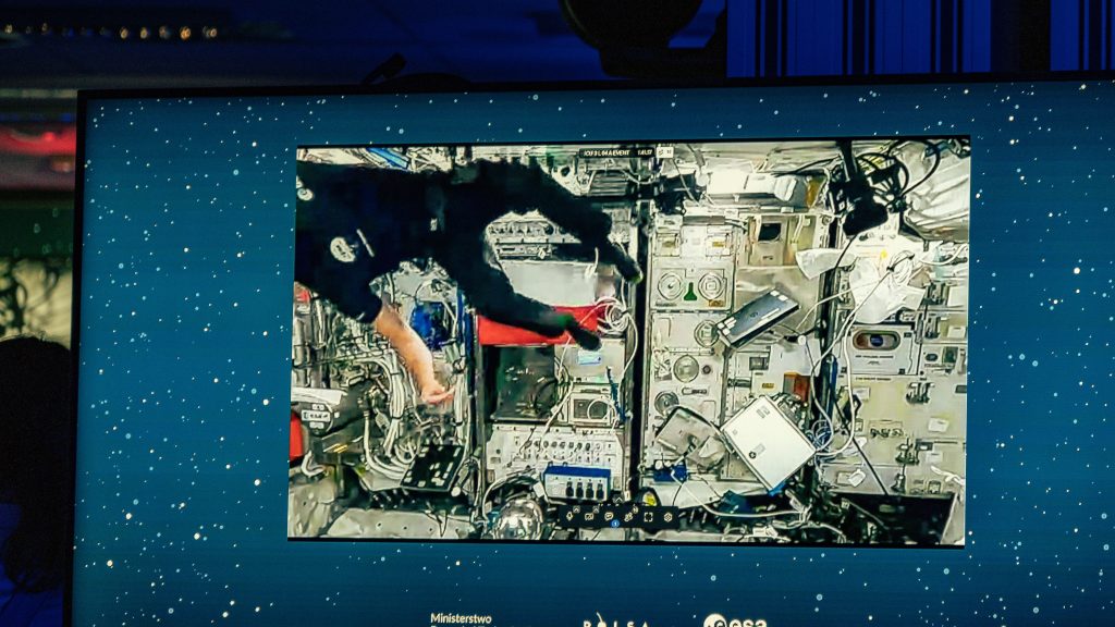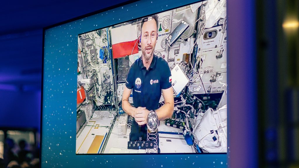 O godzinie 10 odbył się wykład na temat misji IGNIS, w której uczestniczy Sławosz. Wytłumaczone zostało jakie cele ma przedsięwzięcie związane z medycyną, biologią, technologią kosmiczną, inżynierią i rozwojem sztucznej inteligencji. Po przygotowaniach odbyła się najważniejsza część programu wydarzenia – połączenie wideo z astronautą Sławoszem Uznańskim – Wiśniewskim. Polak ten poleciał na Międzynarodową Stację Kosmiczną (ISS) 25 czerwca 2025 roku. Podczas połączenia astronauta wykonał zaproponowane przez laureatów konkursów doświadczenia. Były to eksperymenty z żyroskopem, wodą oraz sprężyną i kulką. Później te same eksperymenty zostały przeprowadzone przez uczniów w warunkach panujących na Ziemi.