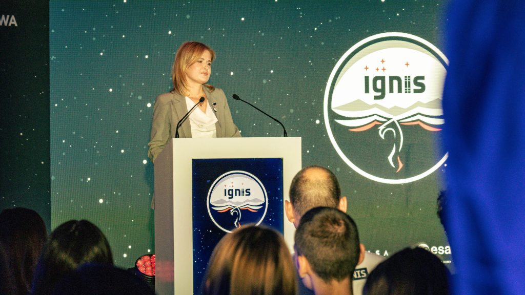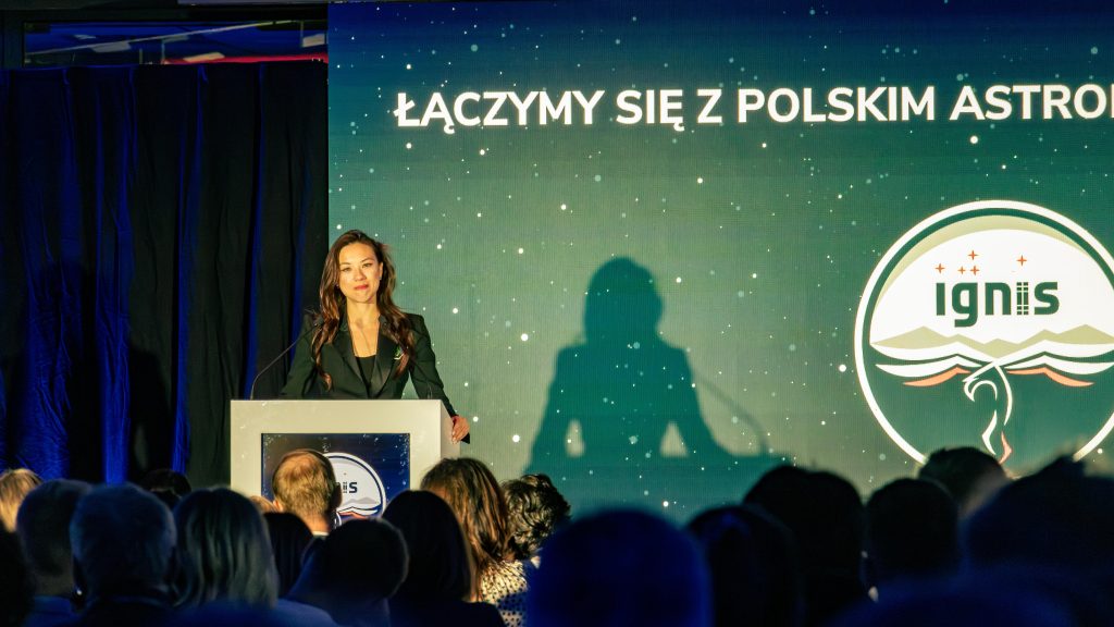 At 10 am, a lecture about the IGNIS took place. The representative of POLSA explained the point of the mission and goals related to medicine, biology, space technology, engineering and AI development studies. After some preparations, it was time for the most important part of the event’s program – a video call with dr. Sławosz Uznański – Wiśniewski, the Pole who flew into space on the 25th of June this year. On the call, the astronaut carried out experiments recommended by the competition winners. The experiments were: the movement of gyroscope in space, the water’s behaviour in near-zero gravity environment and the frequency of a ball oscillating on a spring after release from a strech. After the call, the students who commissioned those experiments carried them out again in the Earth’s environment.