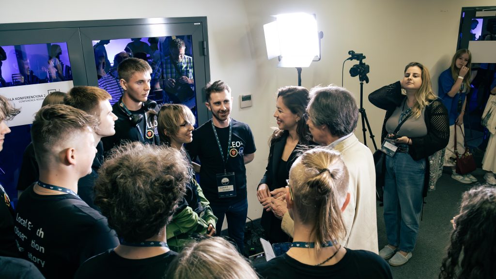Leaving the conference room, The LEOO members shared their feelings about the video call with TV and radio journalists. They also had an opportunity to meet members of other space – related student research circles. They had a chance to meet and talk with Sławosz’s wife – Aleksandra Uznańska – Wiśniewska who was a special guest at the event. The students asked her questions, which she answered gladly. After that, she shook hands with each LEOO members. When the interviews and meetings were over, the students could freely explore the EC1 building and its atttractions. The group returned safe and sound and what is more, with a vast number of new ideas for their future careers.